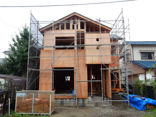 構造用合板施工中